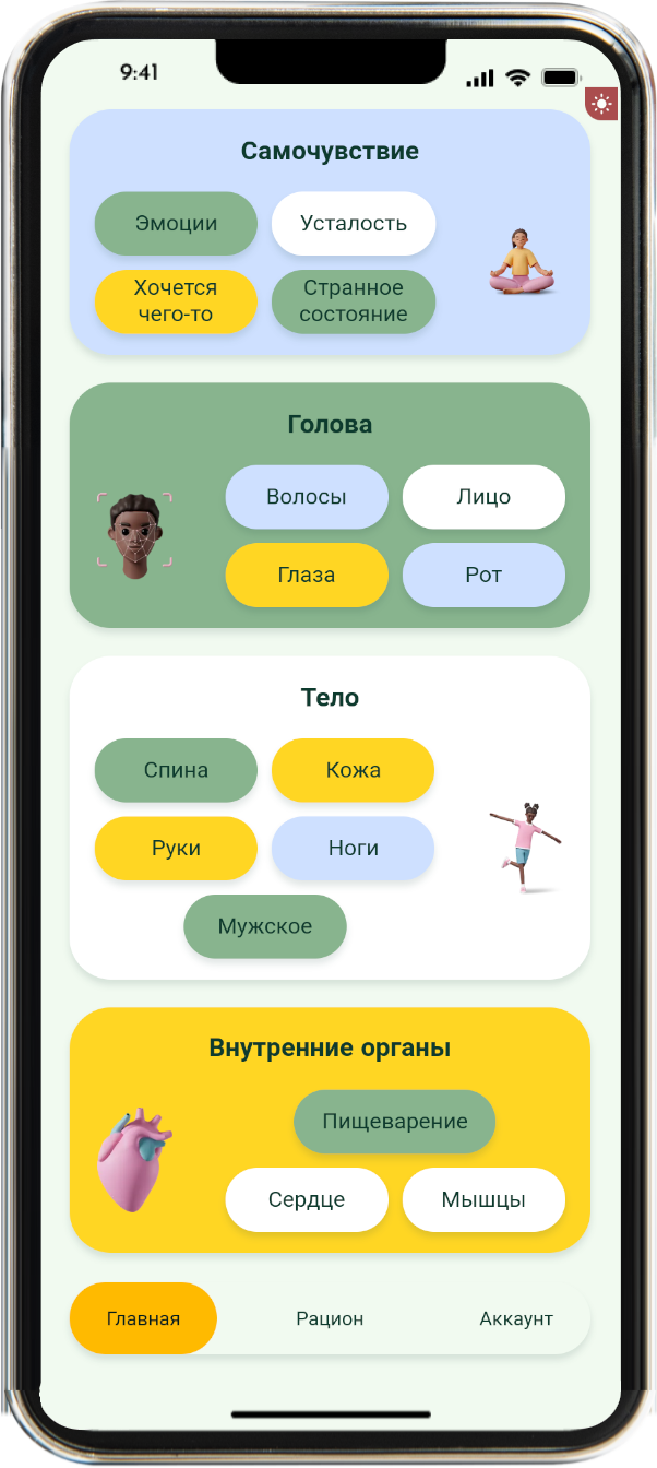 Наша цель - помочь сформировать правильное отношение к еде. Мы используем передовые методы машинного обучения для создания новых инструментов оценки самочувствия и сервиса по поддержки его улучшения.