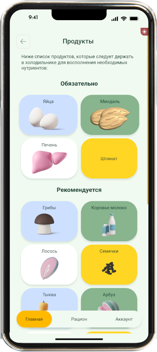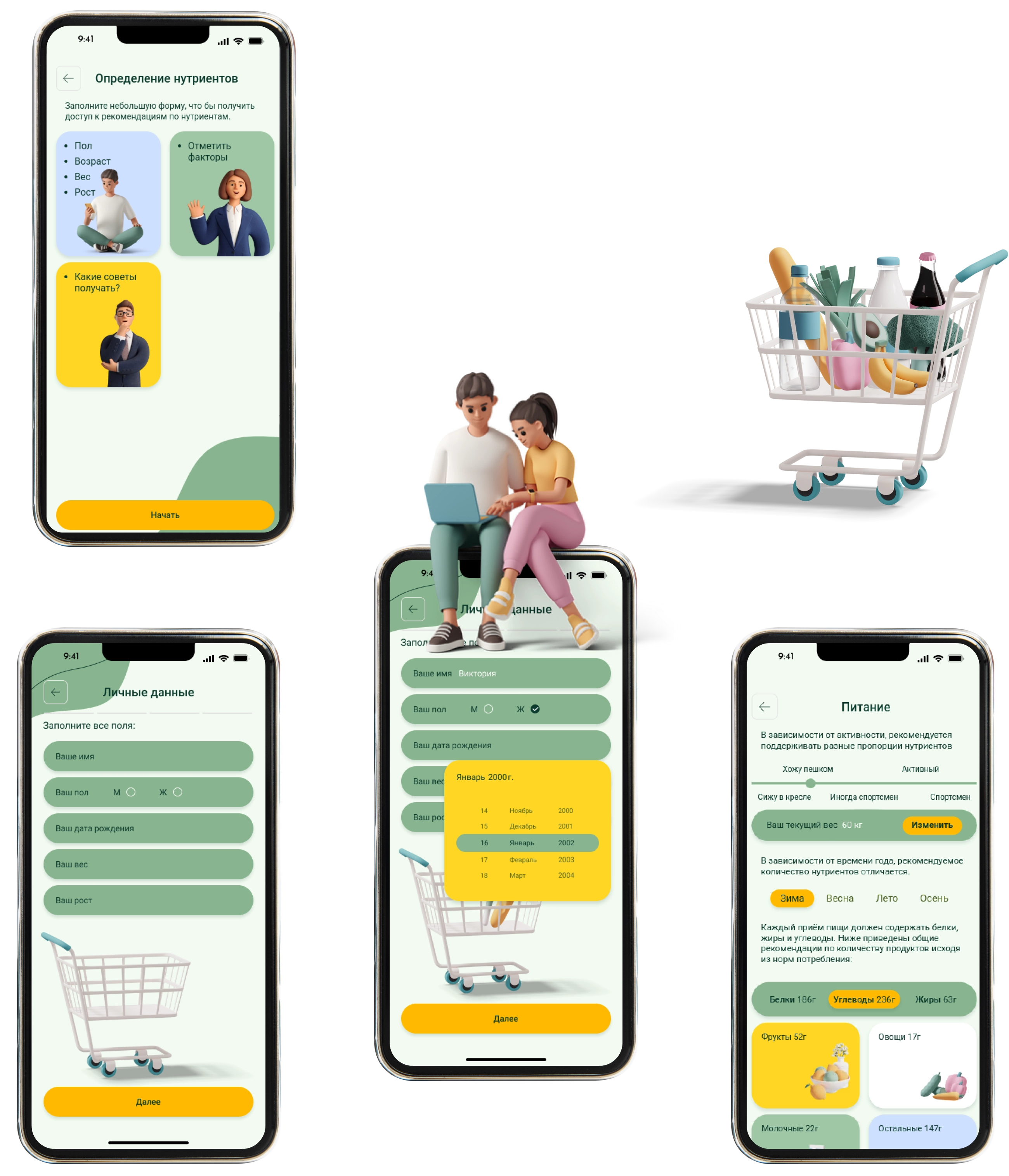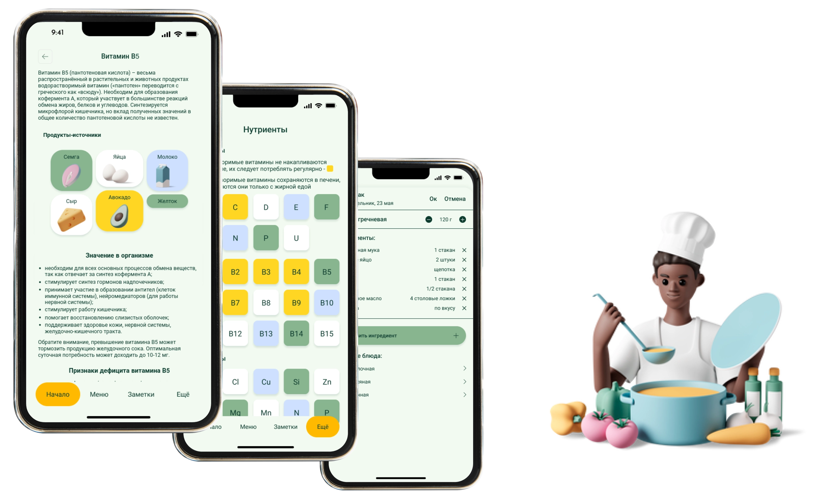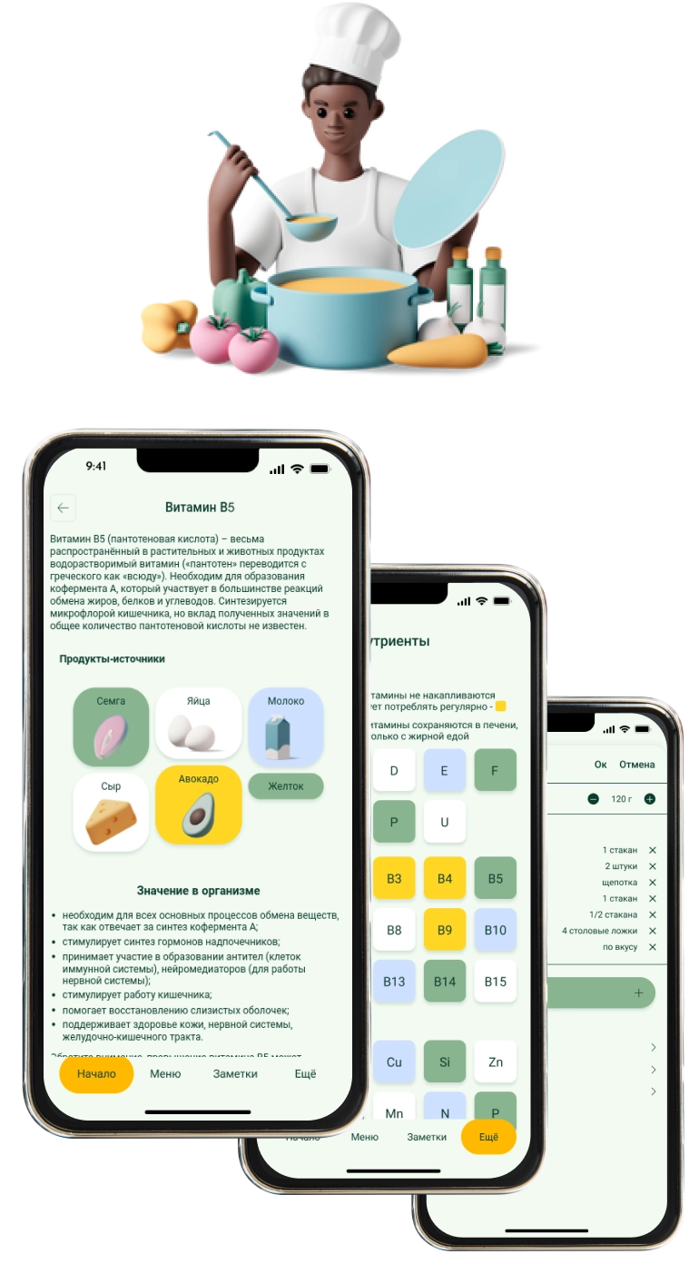 Приложение анализирует питание в вашей семье и предлагает улучшения рациона, помогает сбалансировано питаться и делать рациональные покупки.